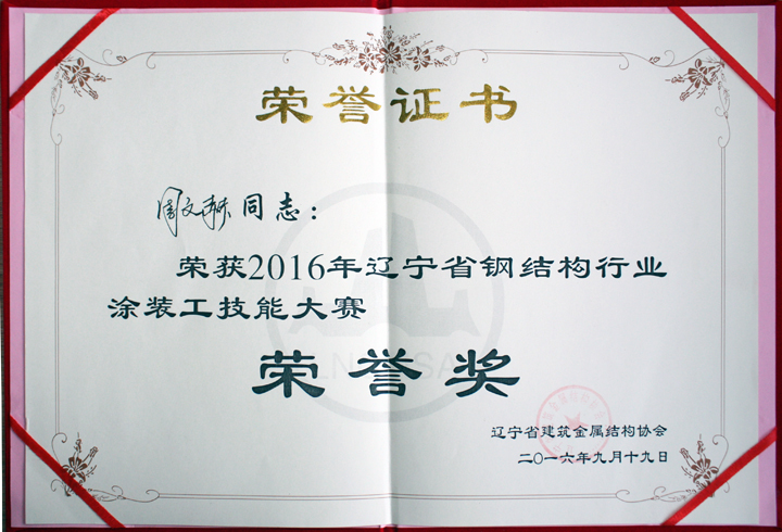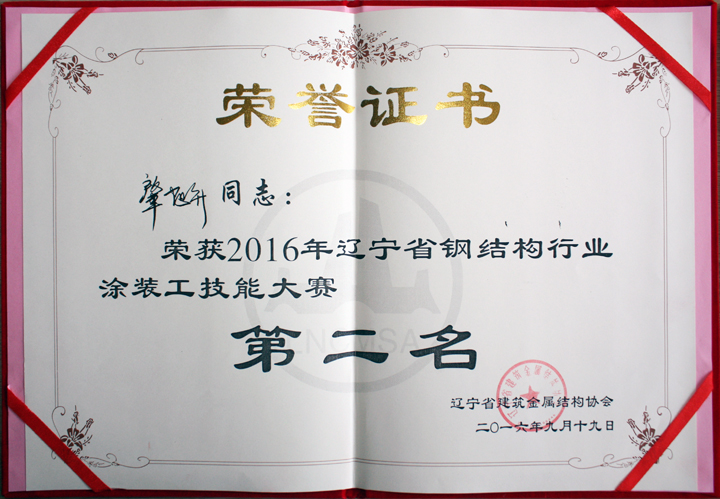 2016年9月19日,由遼寧省建筑金屬結(jié)構(gòu)協(xié)會(huì)主辦的遼寧省鋼結(jié)構(gòu)行業(yè)涂裝工技能大賽圓滿落幕。來(lái)自全省10家企業(yè)的20名選手參加了最后的決賽。我公司鋼構(gòu)生產(chǎn)部技工肇旭升獲得第二名的好成績(jī),周文赫獲得榮譽(yù)獎(jiǎng)。