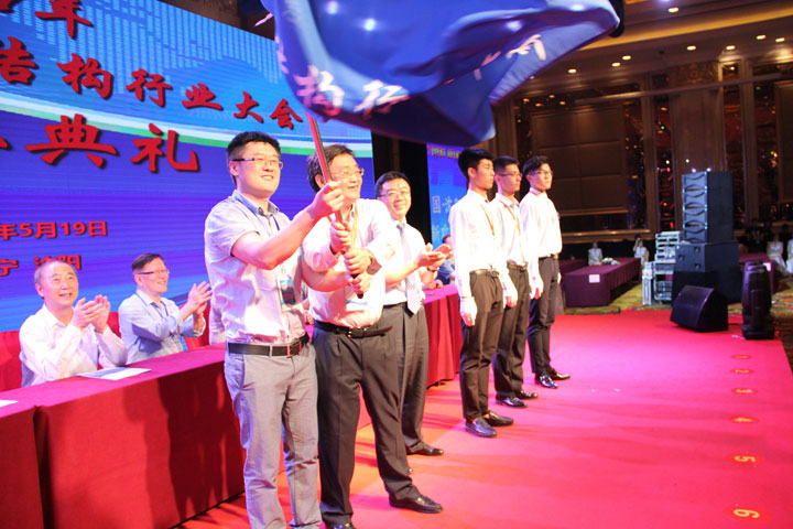 最后,洪長禧總經(jīng)理將象征著年會承辦權(quán)的會旗交到2018年的承辦單位雅百特領(lǐng)導(dǎo)手中,大家相約2018年全國建筑鋼結(jié)構(gòu)行業(yè)大會再相聚!