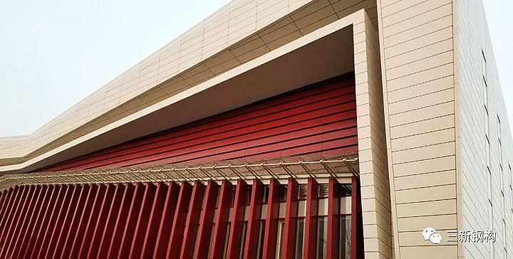 2、項目采用開放式金屬幕墻系統(tǒng),凹槽、洞口、窗口、弧形造型、傾斜面折線、波紋造型的方案設(shè)計,金屬板采用磚紅色金屬板,生產(chǎn)后直接發(fā)運至現(xiàn)場安裝,金屬板顏色種類豐富且減少噴涂過程,縮短生產(chǎn)工期;