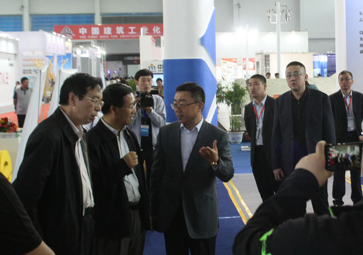 展會期間,國家住房城鄉(xiāng)建設部建筑節(jié)能與科技司副司長郭理橋、國家住建部科技與產業(yè)化發(fā)展中心副主任文林峰、國家住建部科技與產業(yè)化發(fā)展中心處長劉美霞、遼寧省住房和城鄉(xiāng)建設廳廳長魏舉峰、副廳長李海洋、沈陽市副市長于振明、盤錦市人民政府副市長白光及各省市建委相關負責人等領導蒞臨博覽會現(xiàn)場參觀指導,并駐足三新集團展位。各位領導饒有興致的觀看我公司裝配式建筑展品,對我公司的裝配式建筑系統(tǒng)都給予很高的評價,并與三新集團總經(jīng)理洪長禧親切交談。