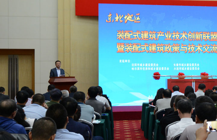 5月18日在遼寧大廈禮堂同期舉辦的“東北地區(qū)裝配式建筑產業(yè)技術創(chuàng)新聯(lián)盟成立暨裝配式建筑政策與技術交流大會”與博覽會相映生輝。住建部建筑節(jié)能與科技司副司長郭理橋、遼寧省住房和城鄉(xiāng)建設廳副廳長李海洋參加活動并講話。洪長禧會長代表沈陽市裝配式建筑協(xié)會在大會上致辭,并與住建部及省廳領導共同完成聯(lián)盟的成立啟動儀式。