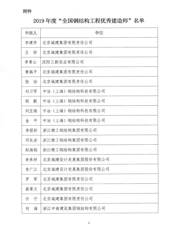 2020年6月15日,中國建筑金屬結(jié)構(gòu)協(xié)會(huì)組織的“全國鋼結(jié)構(gòu)工程優(yōu)秀建造師”評(píng)選活動(dòng)結(jié)果揭曉,李建華、王恒、王中錄等101位被評(píng)為“全國鋼結(jié)構(gòu)工程優(yōu)秀建造師”稱號(hào)。我公司李青山位列其中。李青山主持施工的“黃帝問道大型城雕項(xiàng)目”榮獲“中國鋼結(jié)構(gòu)金獎(jiǎng)”工程。