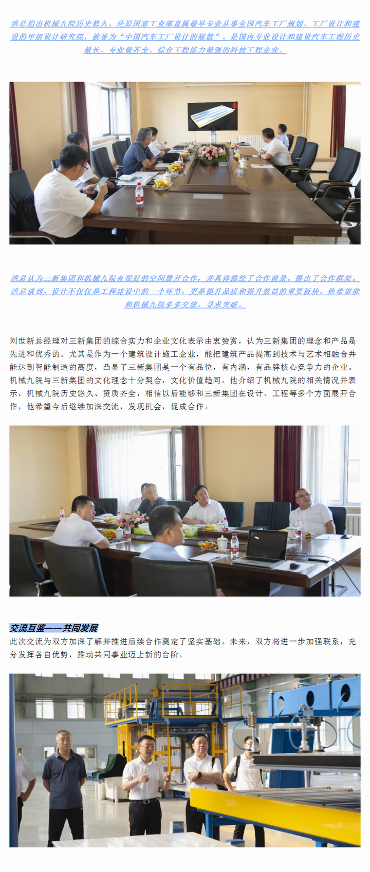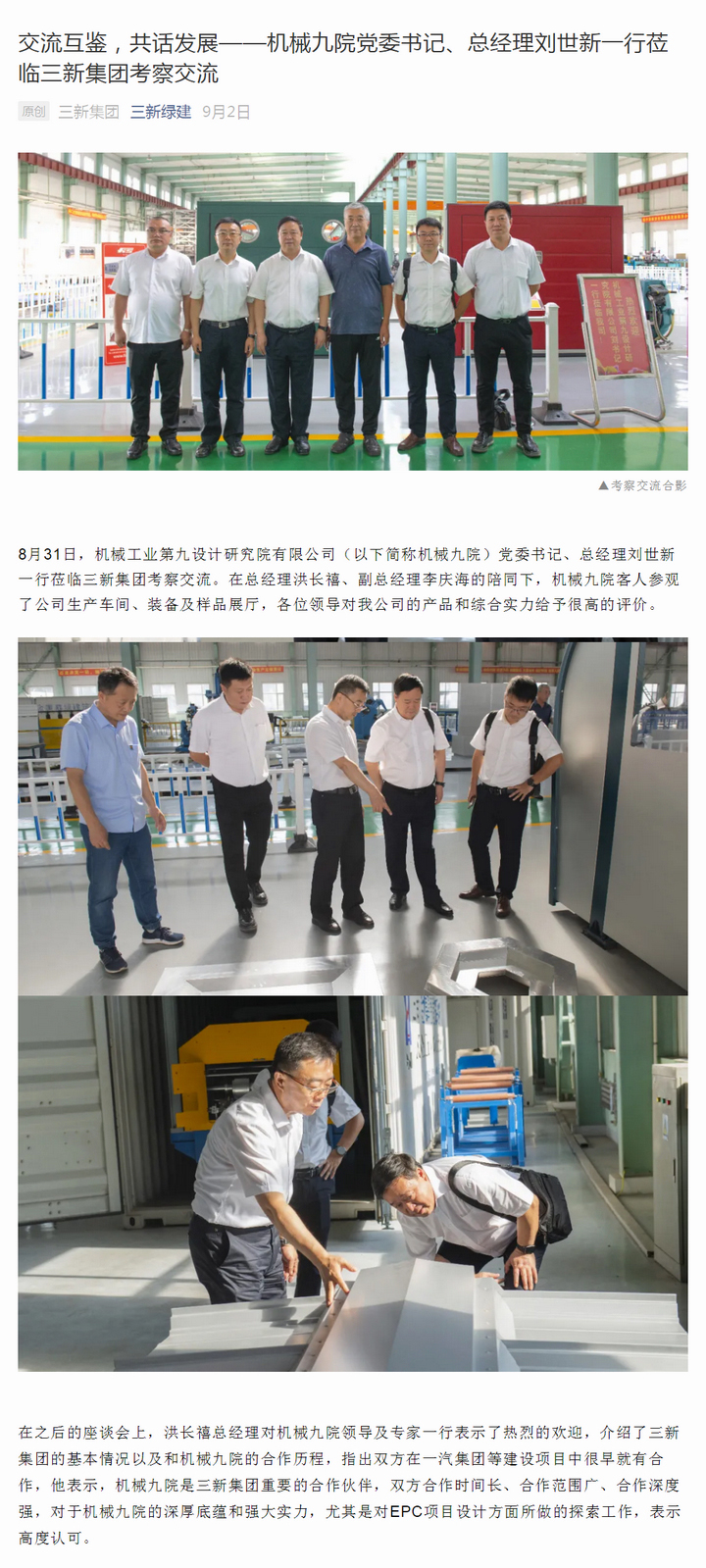 交流互鑒,共話(huà)發(fā)展——機(jī)械九院黨委書(shū)記、總經(jīng)理劉世新一行蒞臨三新集團(tuán)考察交流