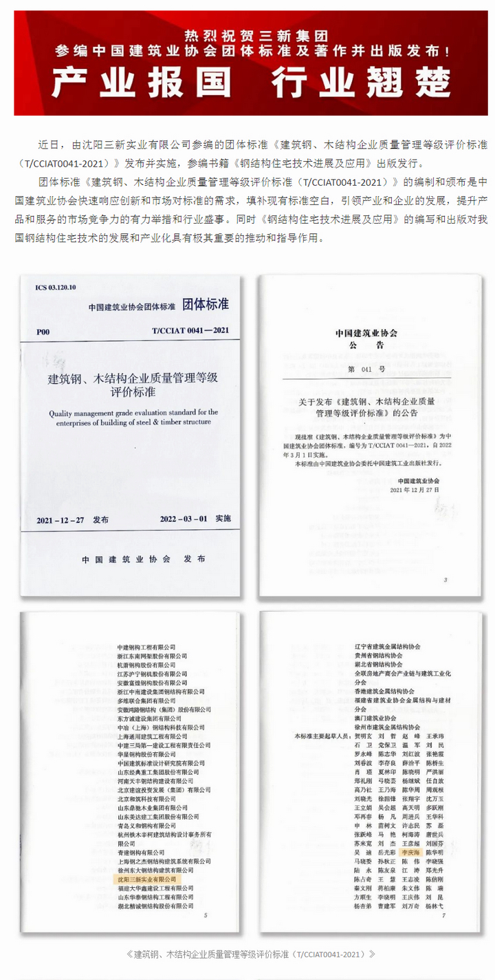 熱烈祝賀三新集團參編中國建筑業(yè)協(xié)會團體標準及著作并出版發(fā)布!