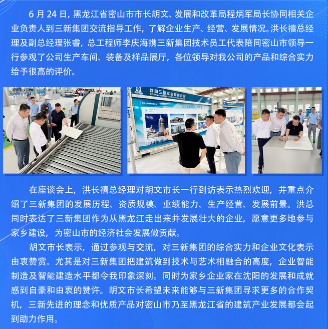 同根同源,共謀發(fā)展——黑龍江省密山市市長胡文一行赴三新集團(tuán)調(diào)研交流工作