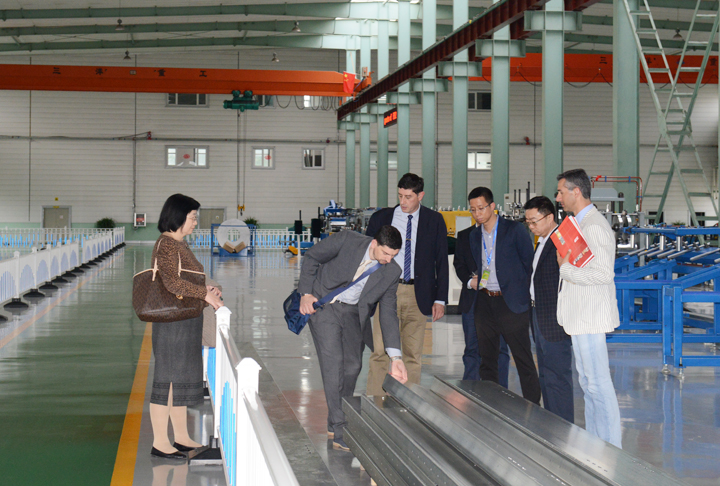 2014年5月16日,意大利FIS公司專家一行5人訪問三新集團(tuán)。在公司總經(jīng)理洪長禧先生、副總經(jīng)理梅峰等的陪同下,客人參觀了我公司金屬幕墻生產(chǎn)車間,對(duì)公司金屬幕墻產(chǎn)品設(shè)備的生產(chǎn)能力、生產(chǎn)裝備、管理情況由衷的贊嘆。