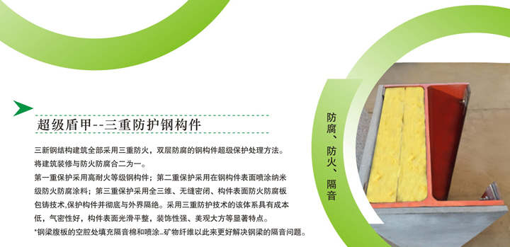 • 三新——綠色建筑領航者。新技術,新工藝,新材料,時尚,環(huán)保,快捷